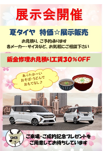 新屋自動車・バントラ商会の合同展示会を開催します^^ 是非お立ち寄りください!!